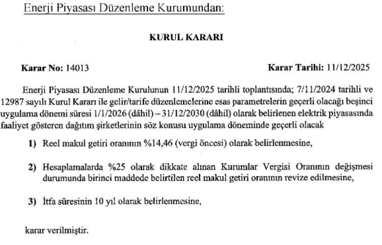 Kararların elektrik piyasasındaki şirketleri ve milyonlarca tüketiciyi doğrudan etkilemesi bekleniyor.