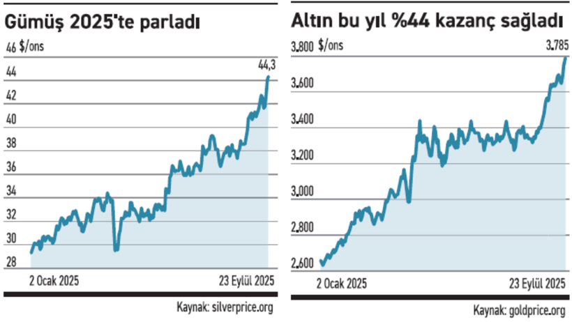 Küresel piyasalarda değerli metaller, ABD Merkez Bankası’nın (Fed) faiz indirim sinyalleri ve zayıflayan doların etkisiyle tarihi bir ralli yaşıyor.