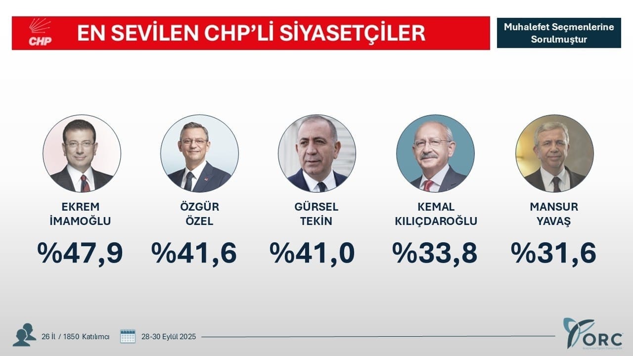 ORC Araştırma, daha önce 28-30 Eylül tarihleri arasında 26 ilde muhalif seçmenlerle yaptığı “En Sevilen CHP’li Siyasetçiler Kimlerdir?” anketiyle gündem olmuştu. Sonuçlar, kamuoyunda büyük şaşkınlık yaratmıştı.