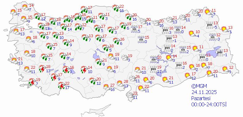 Meteoroloji Genel Müdürlüğü’nün verilerine göre bugün batı illerinde kuvvetli sağanak yağış bekleniyor.