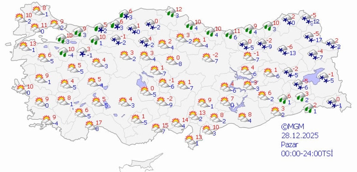 Yağışlar Marmara’nın Doğusu, Karadeniz Bölgesinin iç kesimleri, İç Anadolu’nun Doğusu ile Doğu Anadolu’nun Kuzey ve Doğusunda kar şeklinde görülecek.
